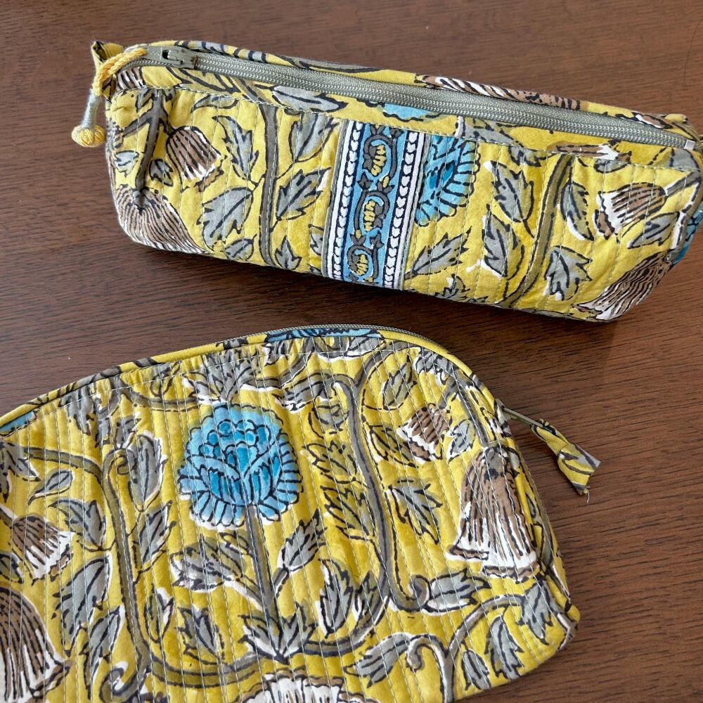 ペンケース形ポーチ ブロックプリント ANOKHI マスタード