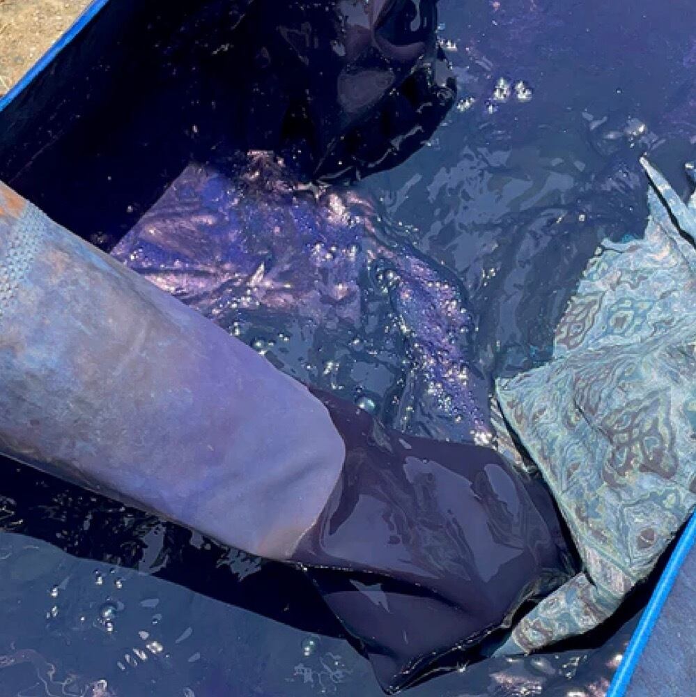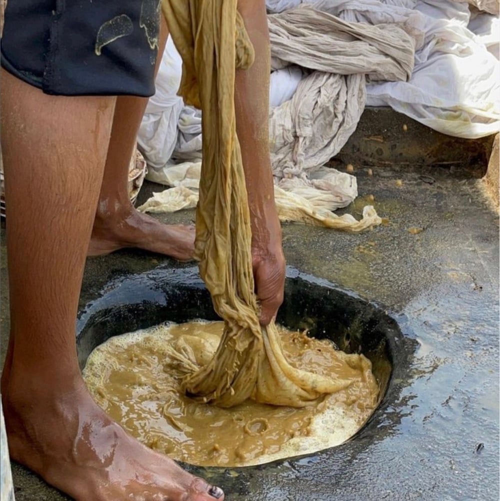 布の洗浄、媒染剤としてマイロバラン(インド産の植物)による染色を行います