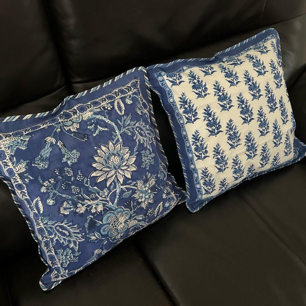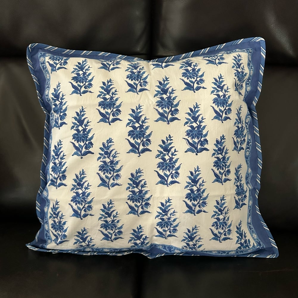 ブロックプリントの本場、インドのジャイプール地方で作られたクッションカバー。