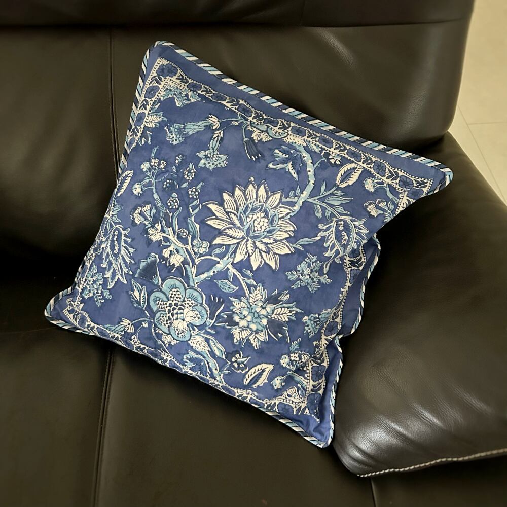ブロックプリントの本場、インドのジャイプール地方で作られたクッションカバー。