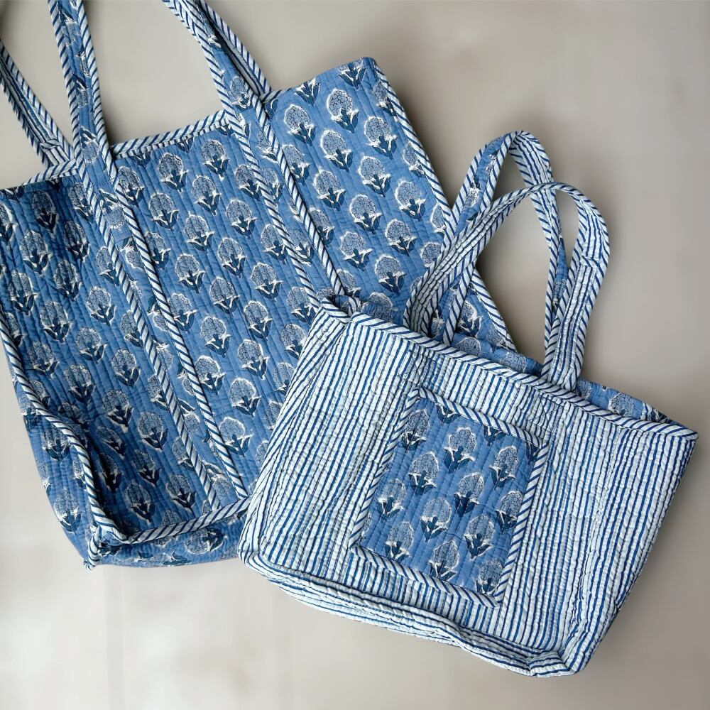 ミニトートバッグ ブロックプリント コットンキルト L