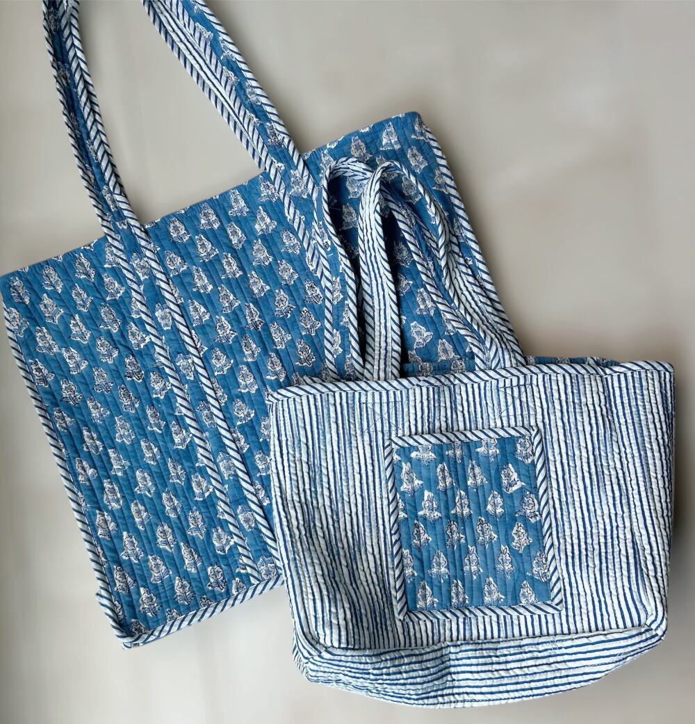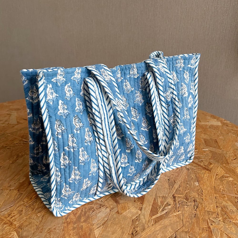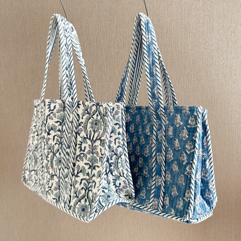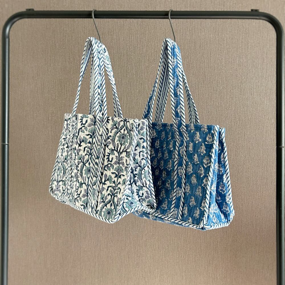 ミニトートバッグ ブロックプリント コットンキルト R