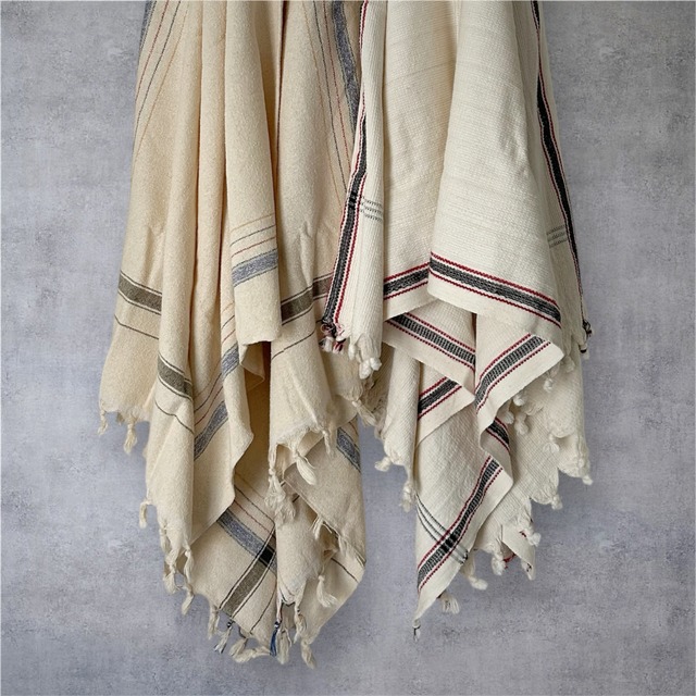バスタオル ファインコットンガムチャ 手織り 生成り