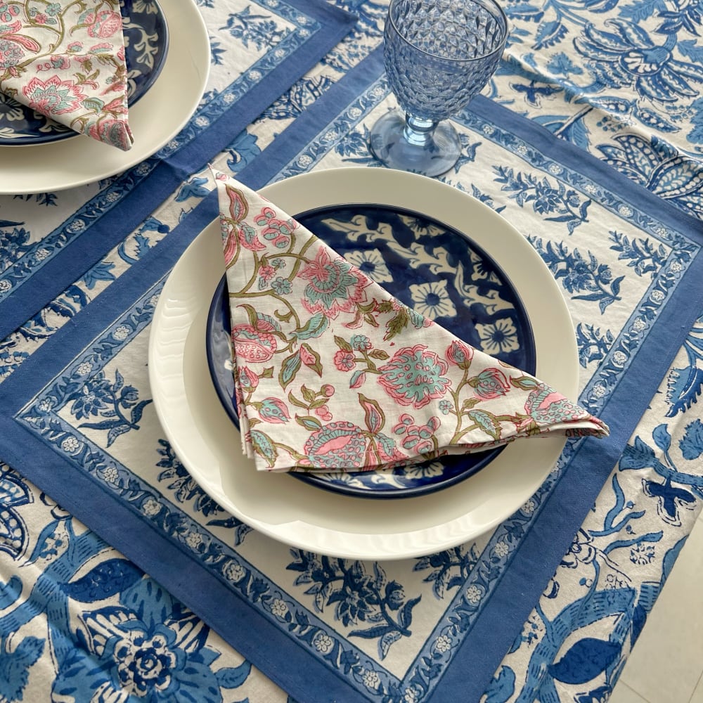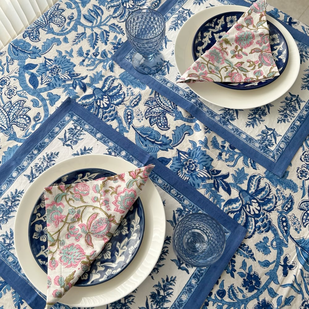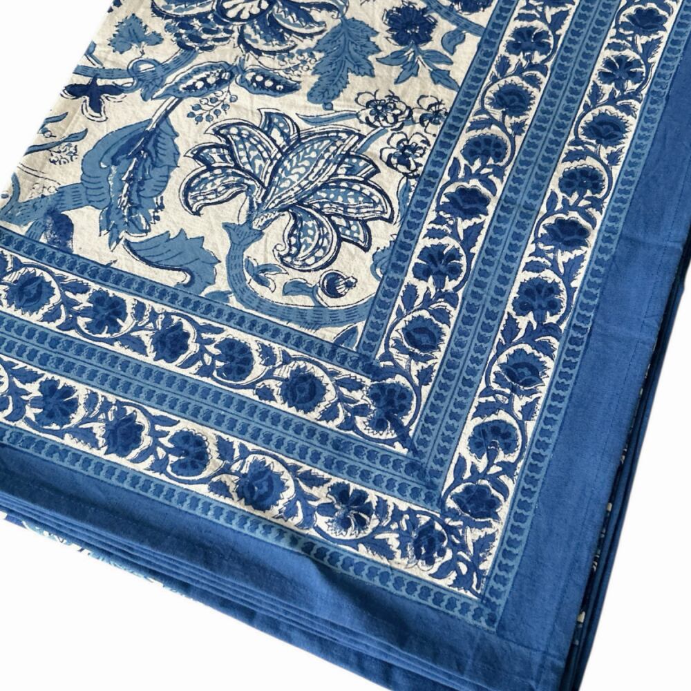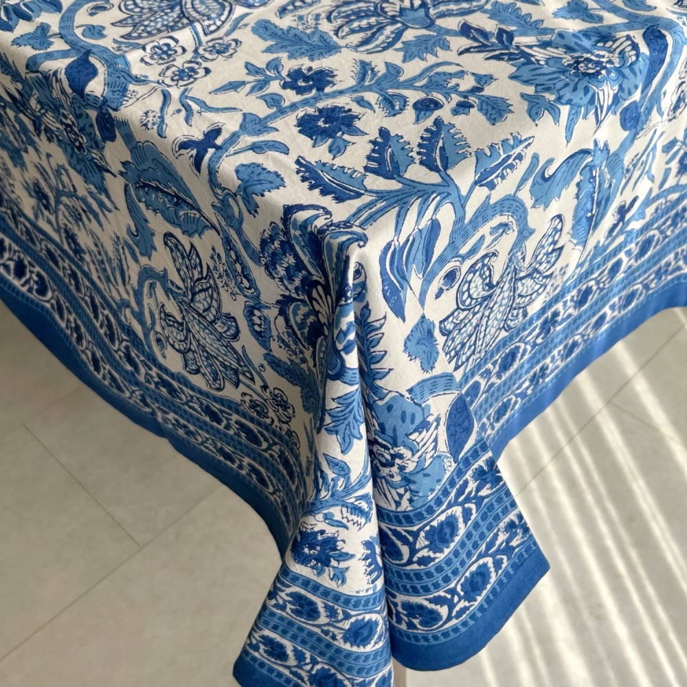インド・ジャイプール地方で作られた、ブロックプリントのテーブルカバー。