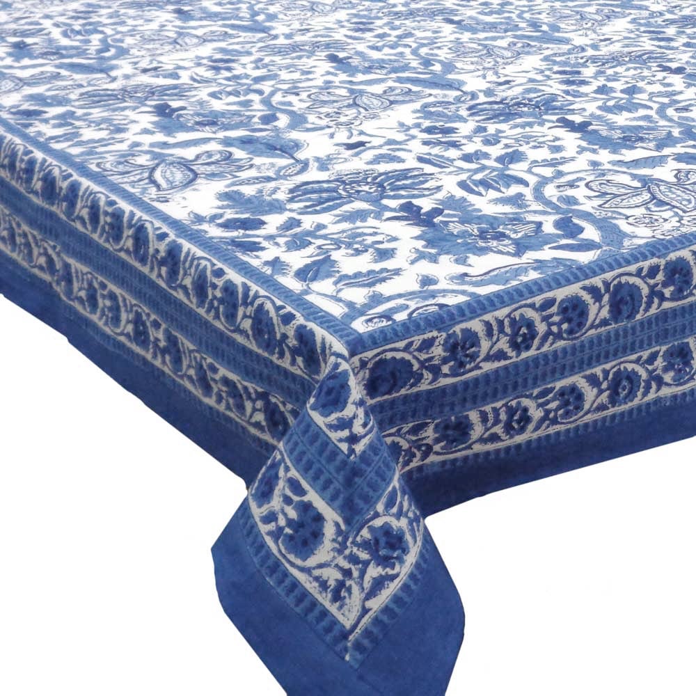 テーブルクロス マルチカバー ブロックプリント ブルーA