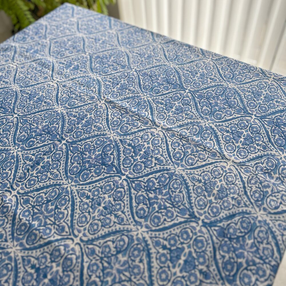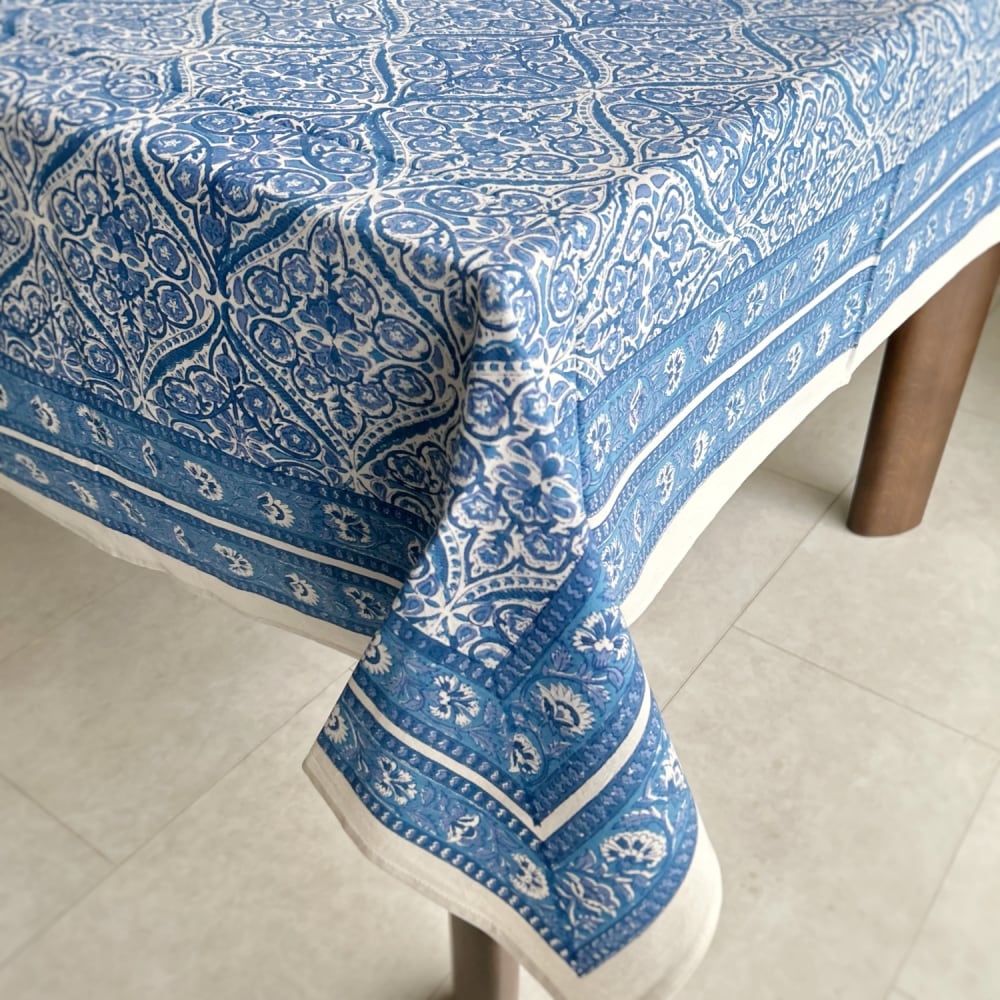 インド・ジャイプール地方で作られた、ブロックプリントのテーブルカバー。