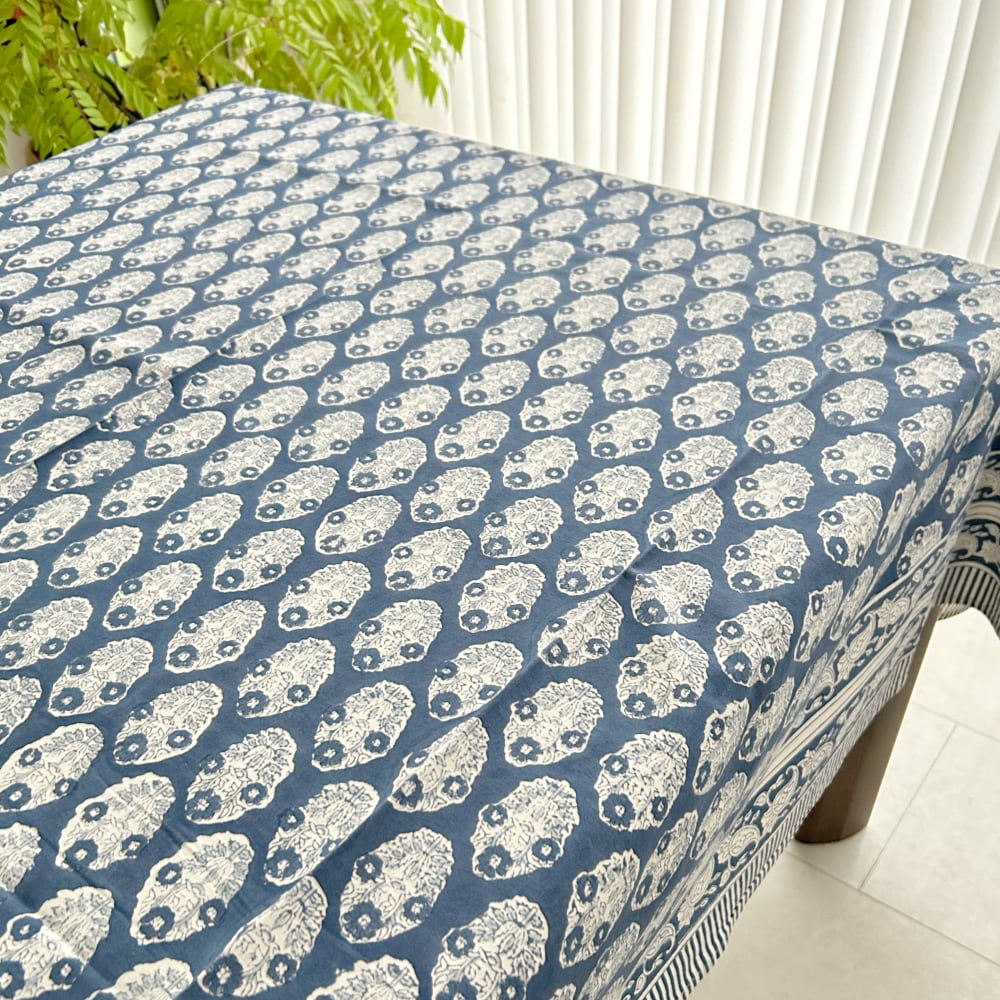 テーブルクロス マルチカバー ブロックプリント ブルーC