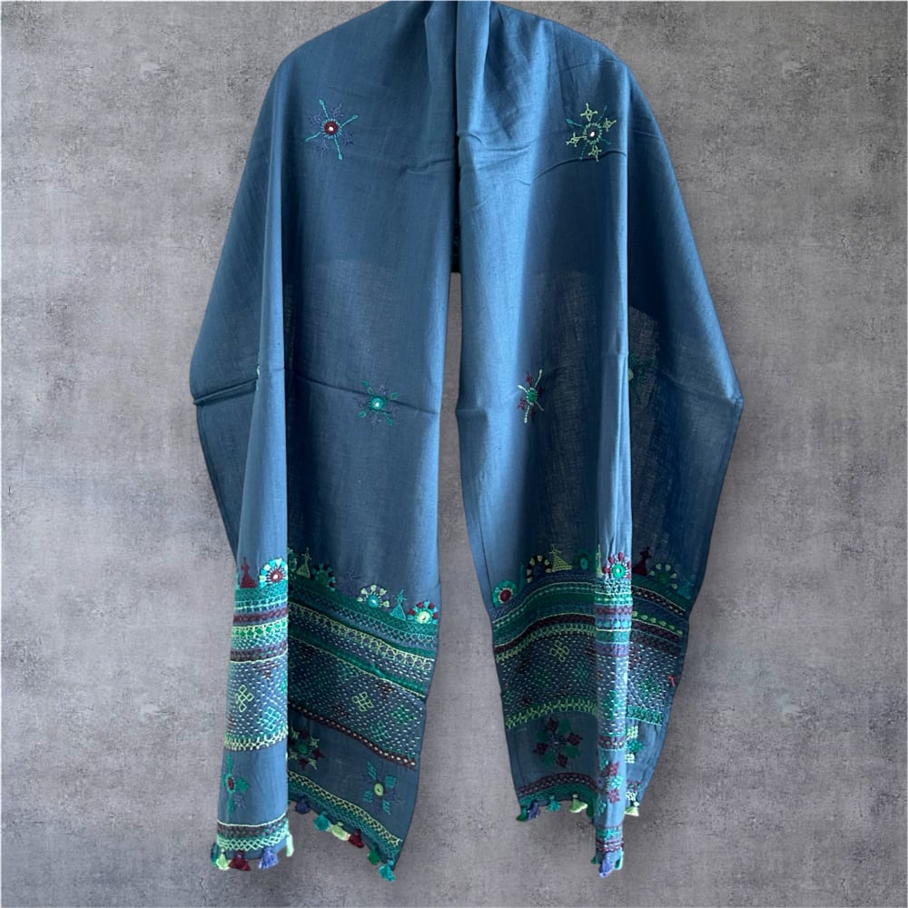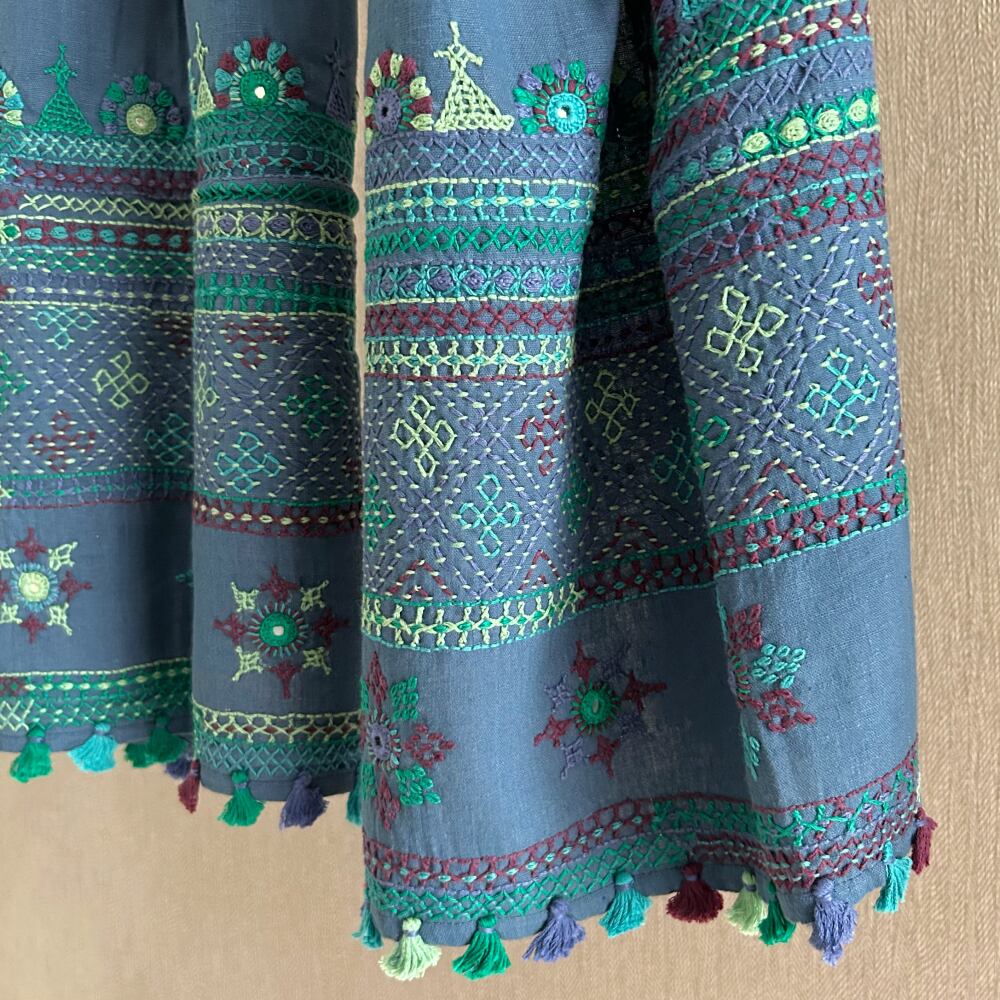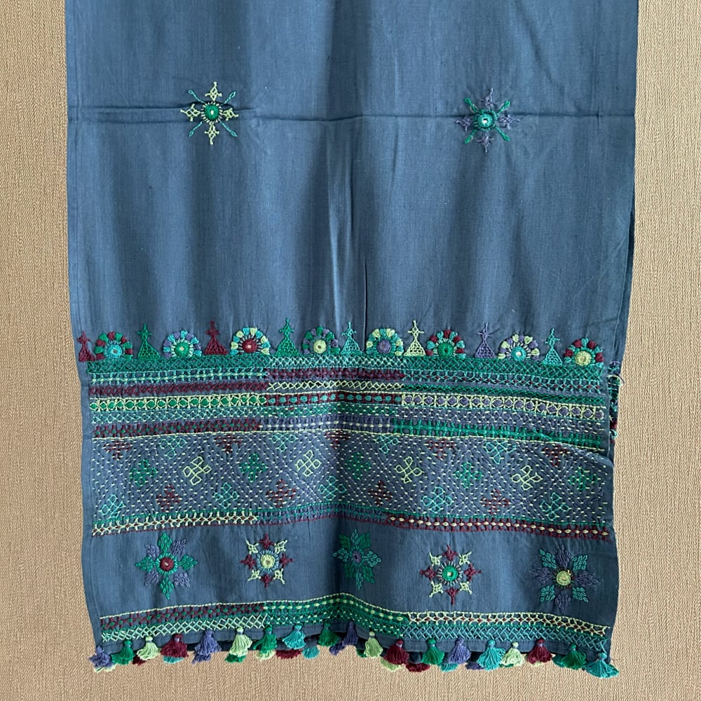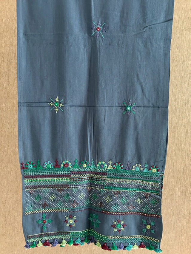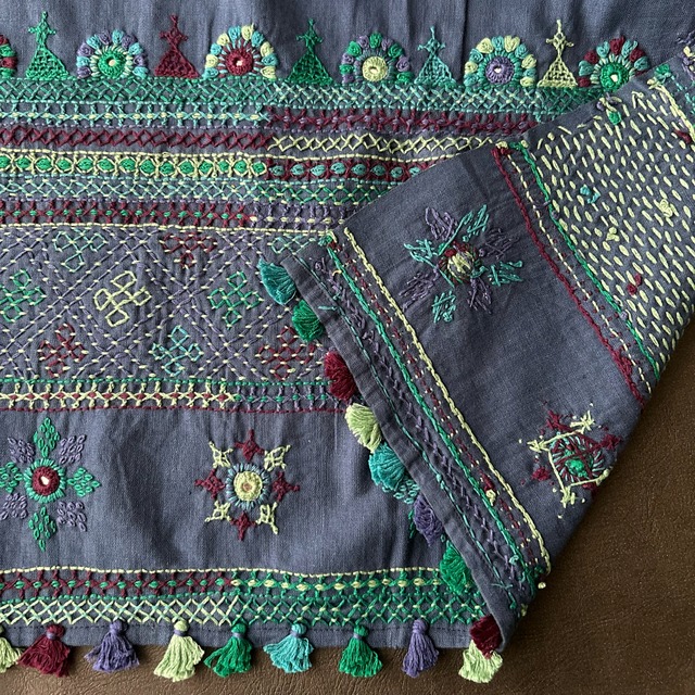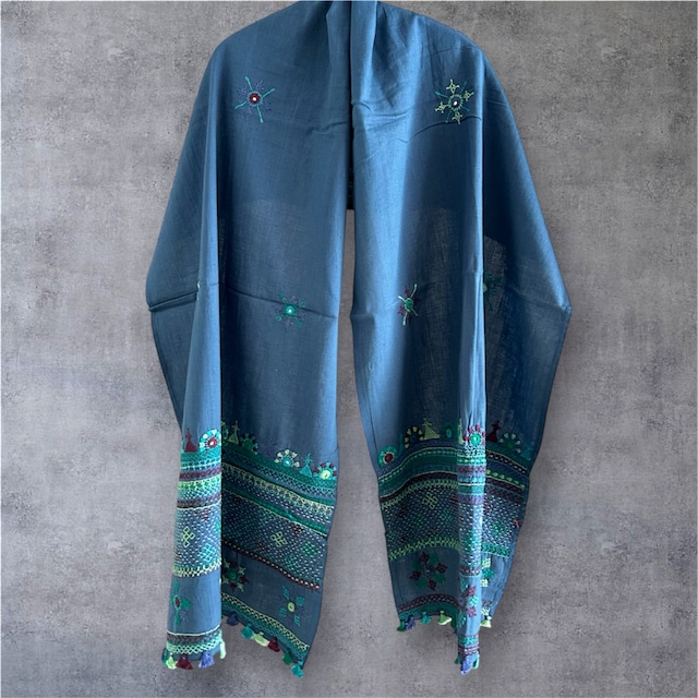 手織りならではの味わい深いコットン生地に、見事な手刺繍が施されたストール。