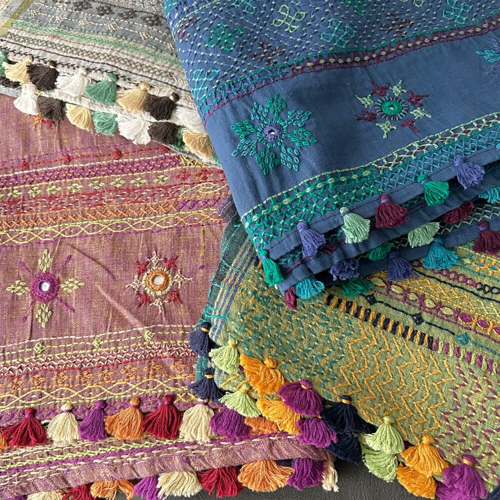 ランバニ(バンジャラ)刺繍 手織りコットンストール G 【送料無料】