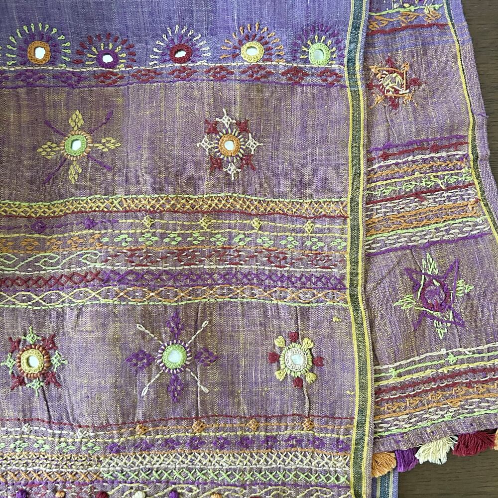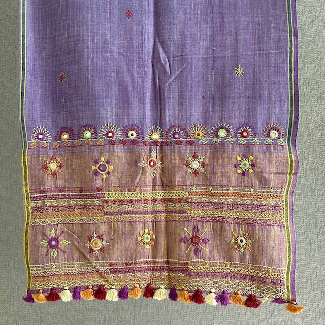 ランバニ(バンジャラ)刺繍 手織りコットンストール H 【送料無料】