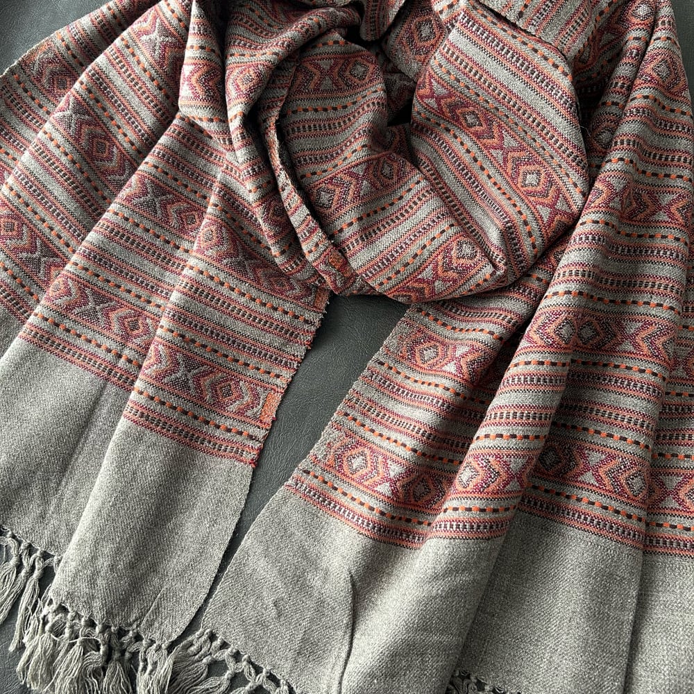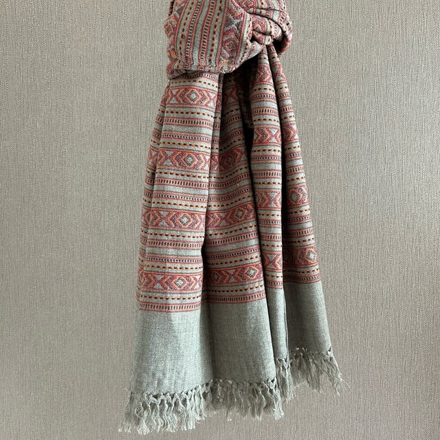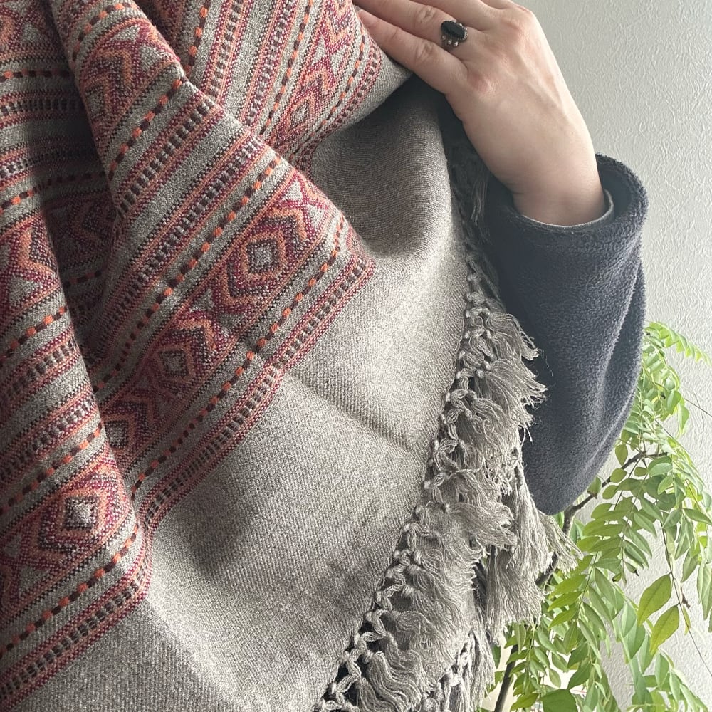厳しい寒さの中で暮らす人々の知恵から生まれたストールで、防寒性と実用性を大切にしながら、代々受け継がれてきた手織りの布です。素朴で力強い織りの表情は、日常の装いに自然と馴染みます。