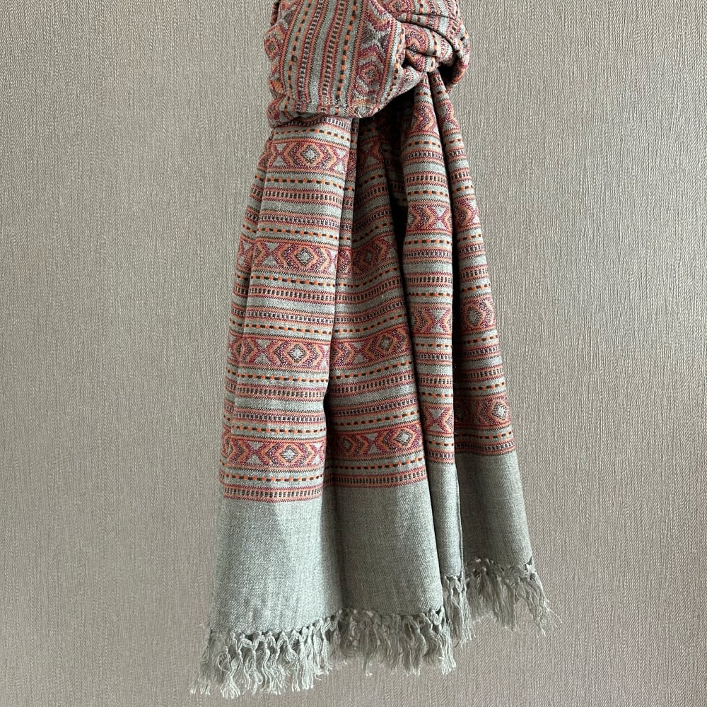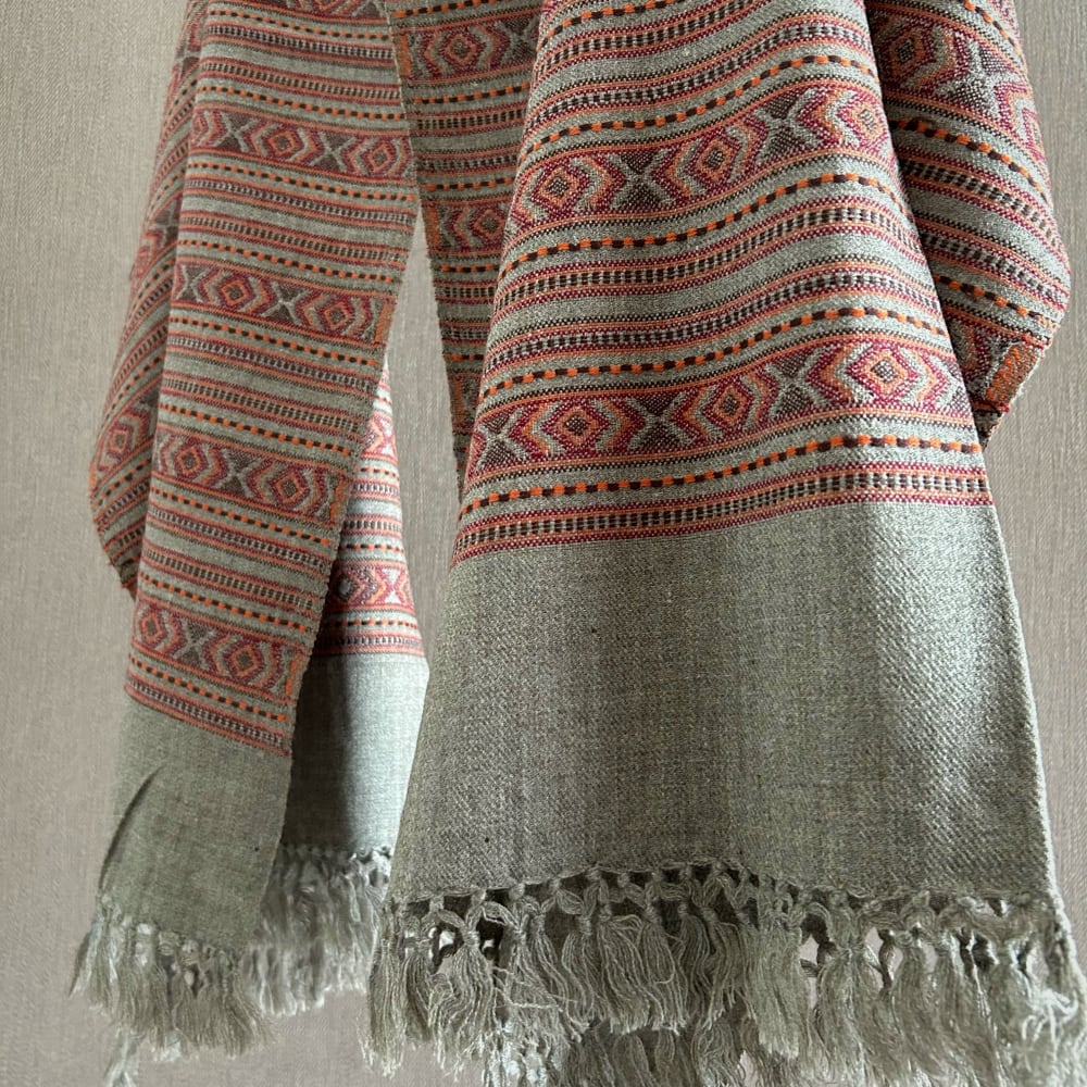 ヤクウール混 手織り大判ストール|Pahadi ヒマラヤ伝統織り ライトグレー 【送料無料】