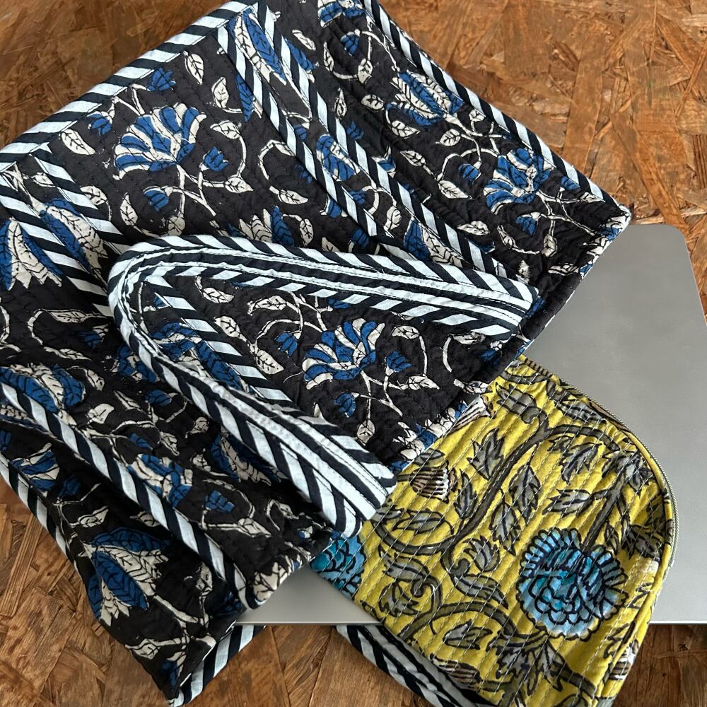 外側には、インドの伝統的なブロックプリント生地を使用し、オリエンタルな雰囲気と洗練された色合いが魅力です。
