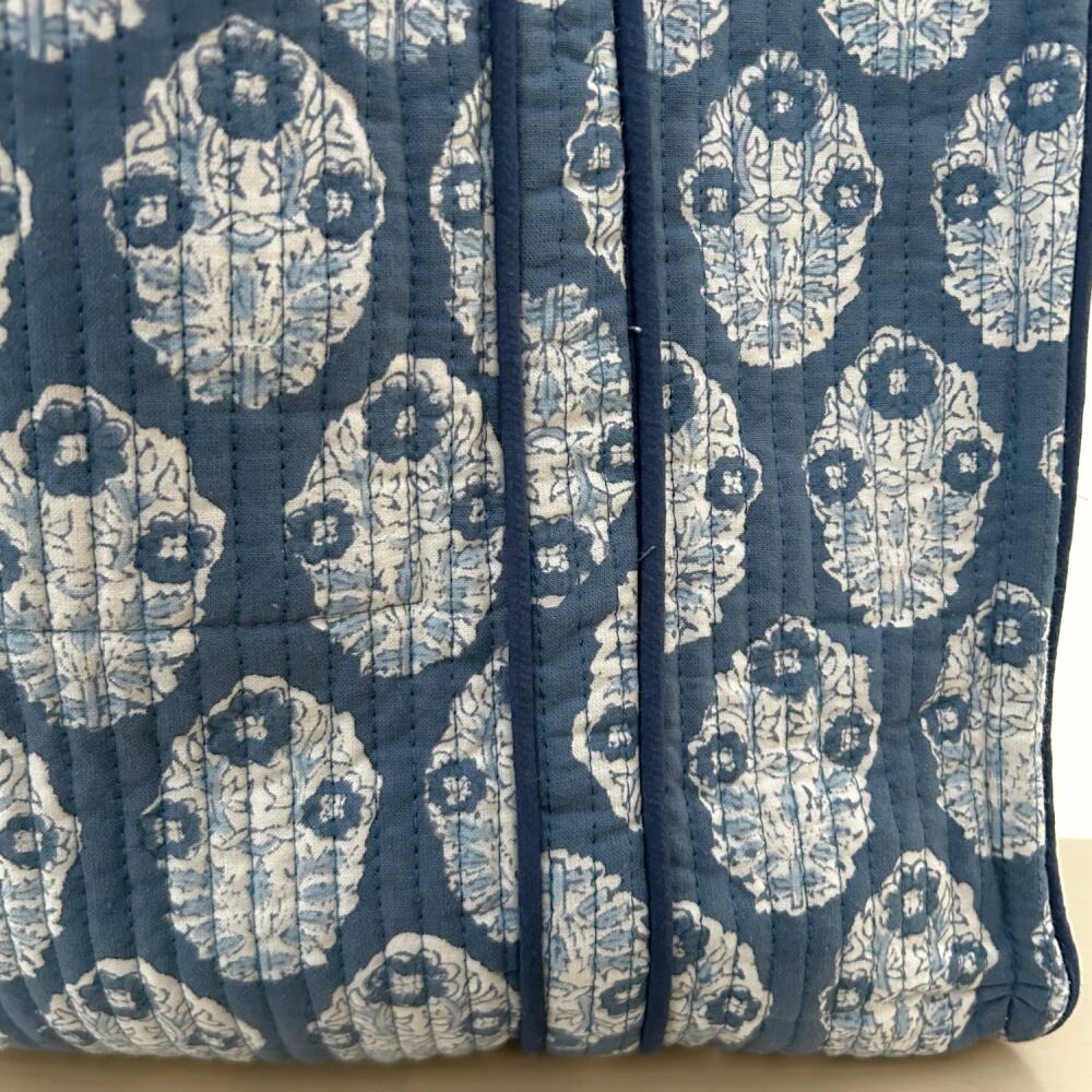外側には、インドの伝統的なブロックプリント生地を使用。
