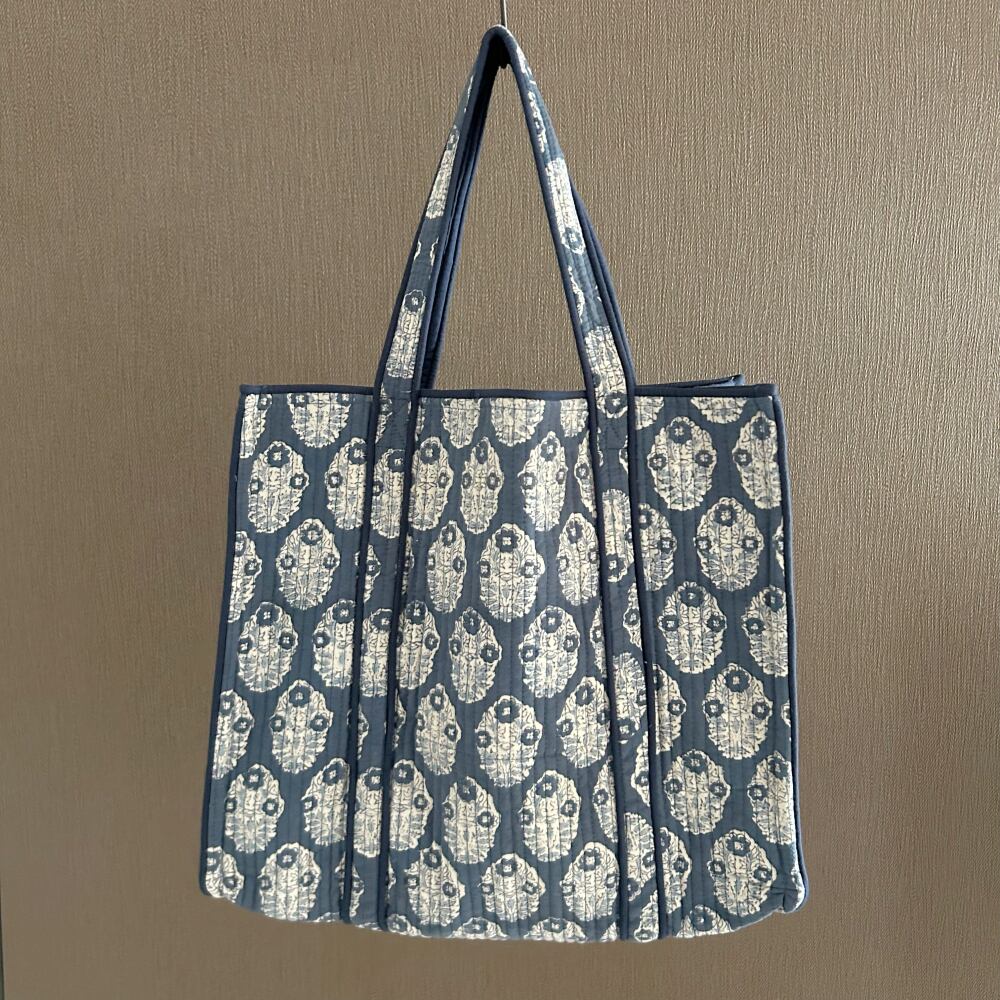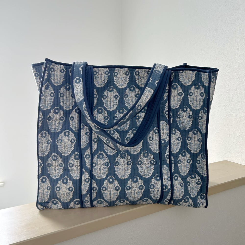 トートバッグ コットンキルト ブルーA
