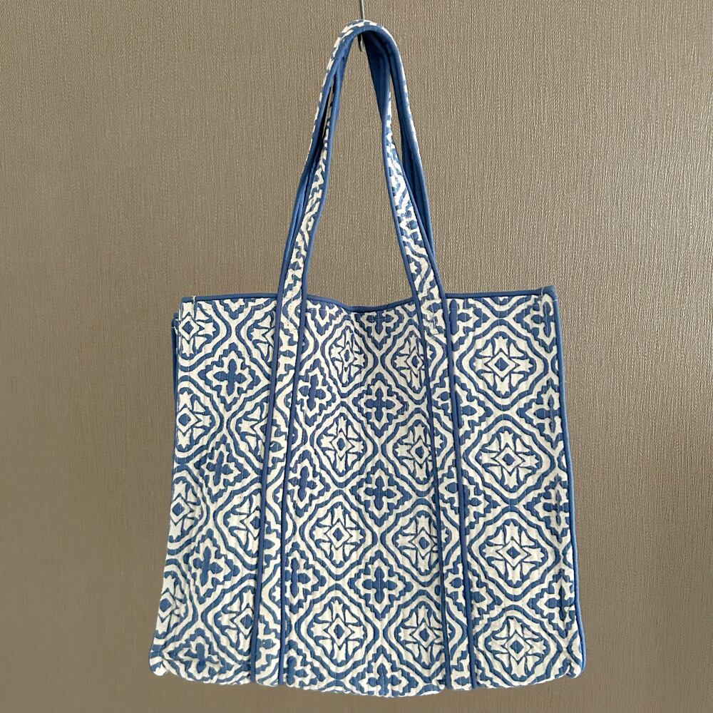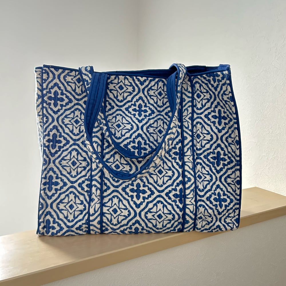 トートバッグ コットンキルト ブルーB
