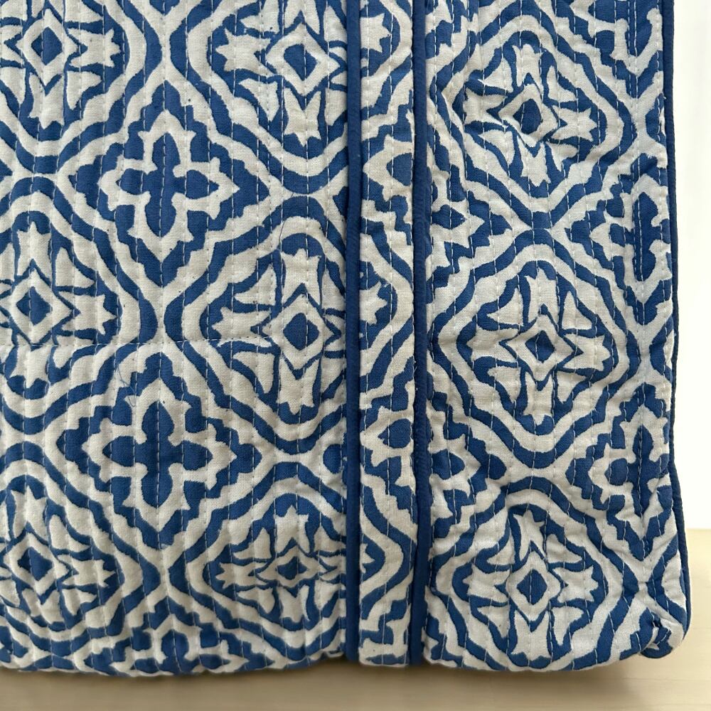 外側には、インドの伝統的なブロックプリント生地を使用。