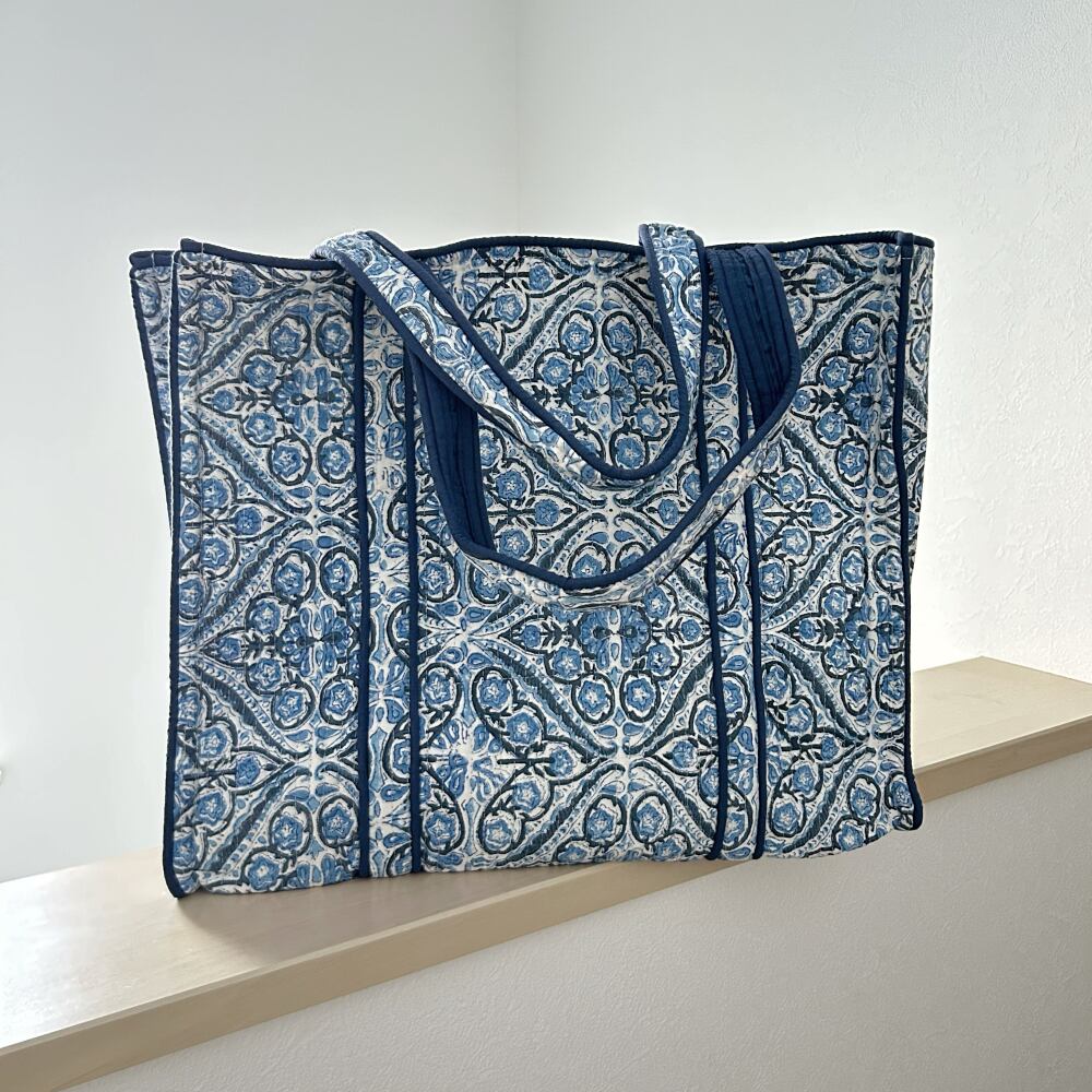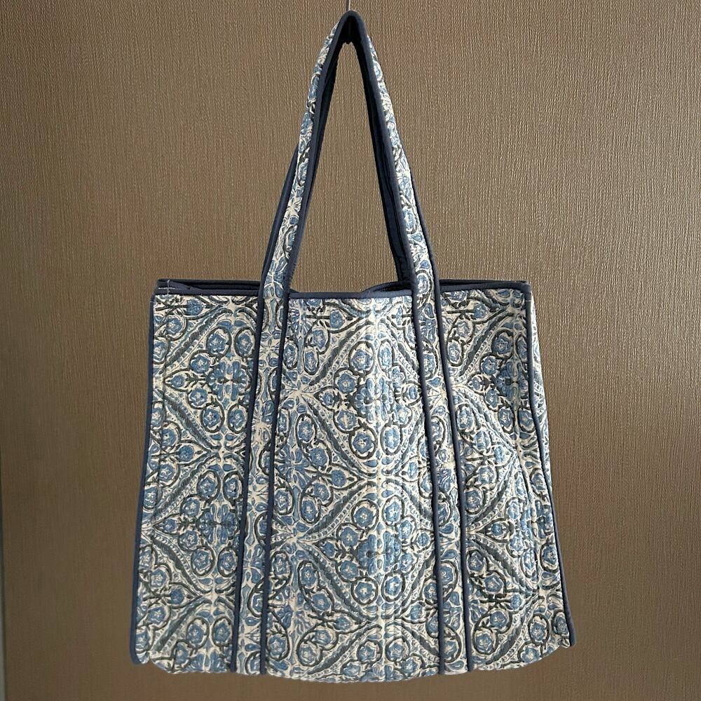 トートバッグ コットンキルト ブルーC