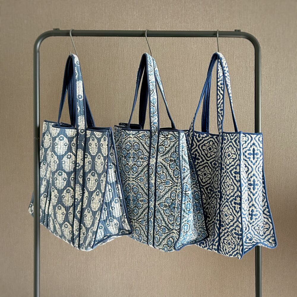 美しいハンドプリントが目を惹く、コットンキルトバッグ。