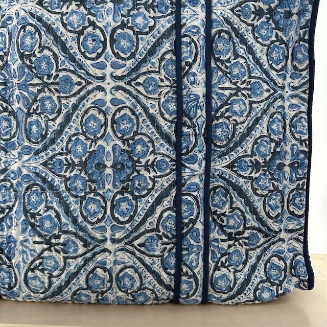 外側には、インドの伝統的なブロックプリント生地を使用。