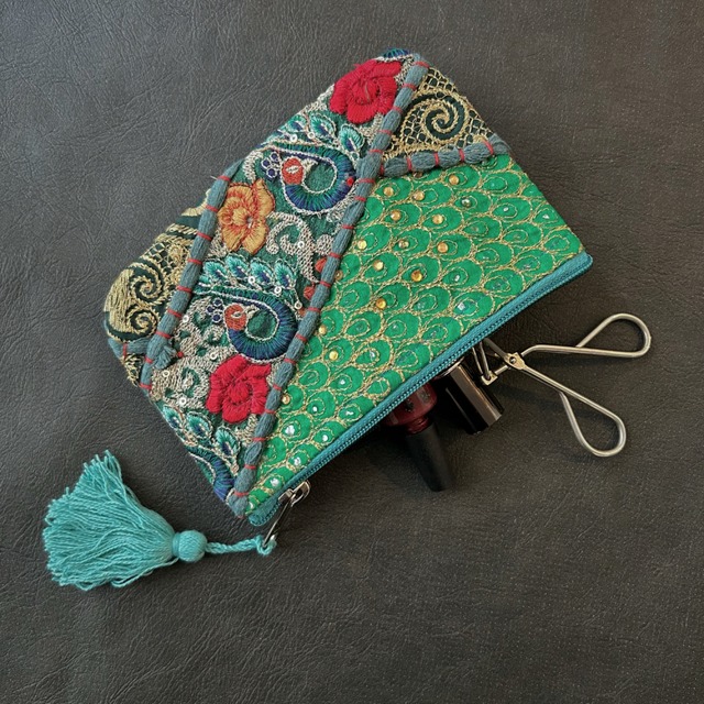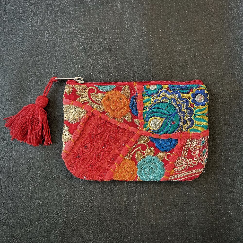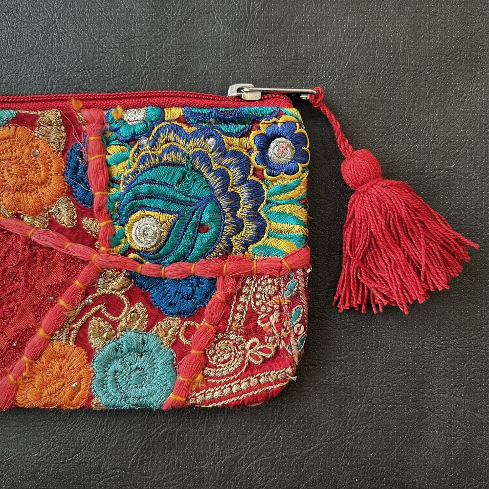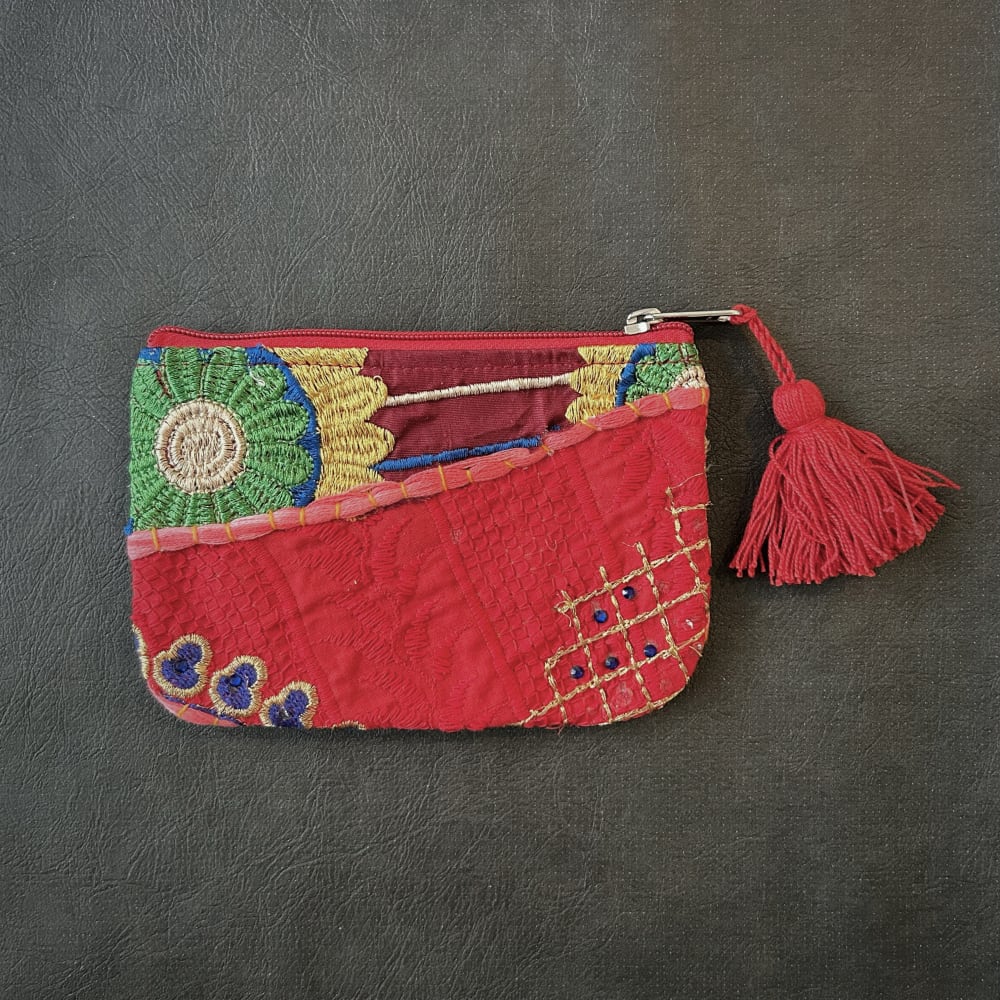 刺繍パッチワークポーチ カンバディア レッドA