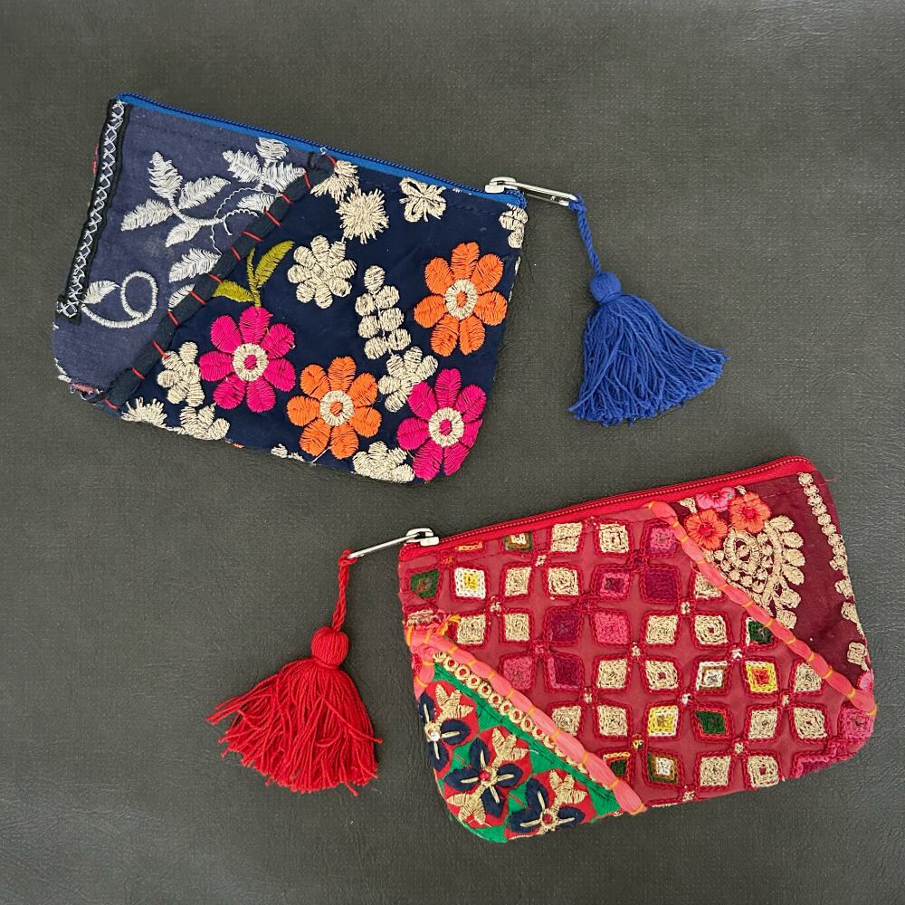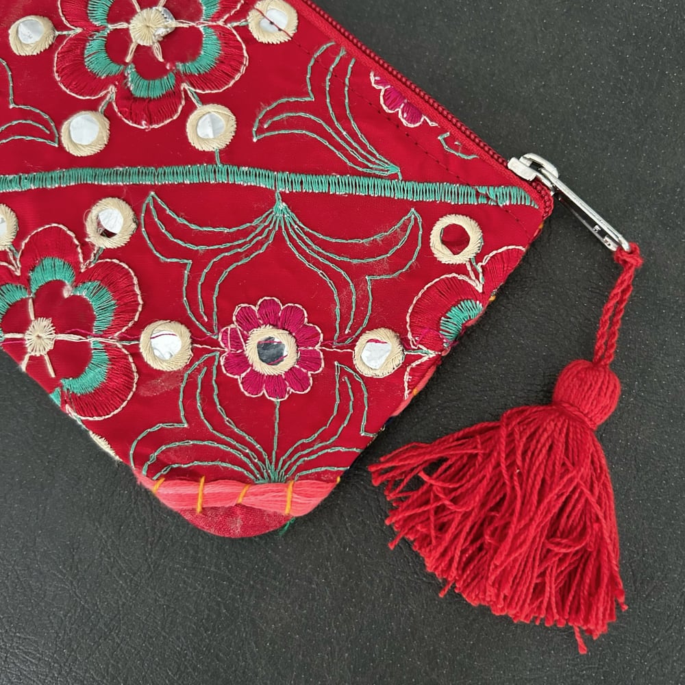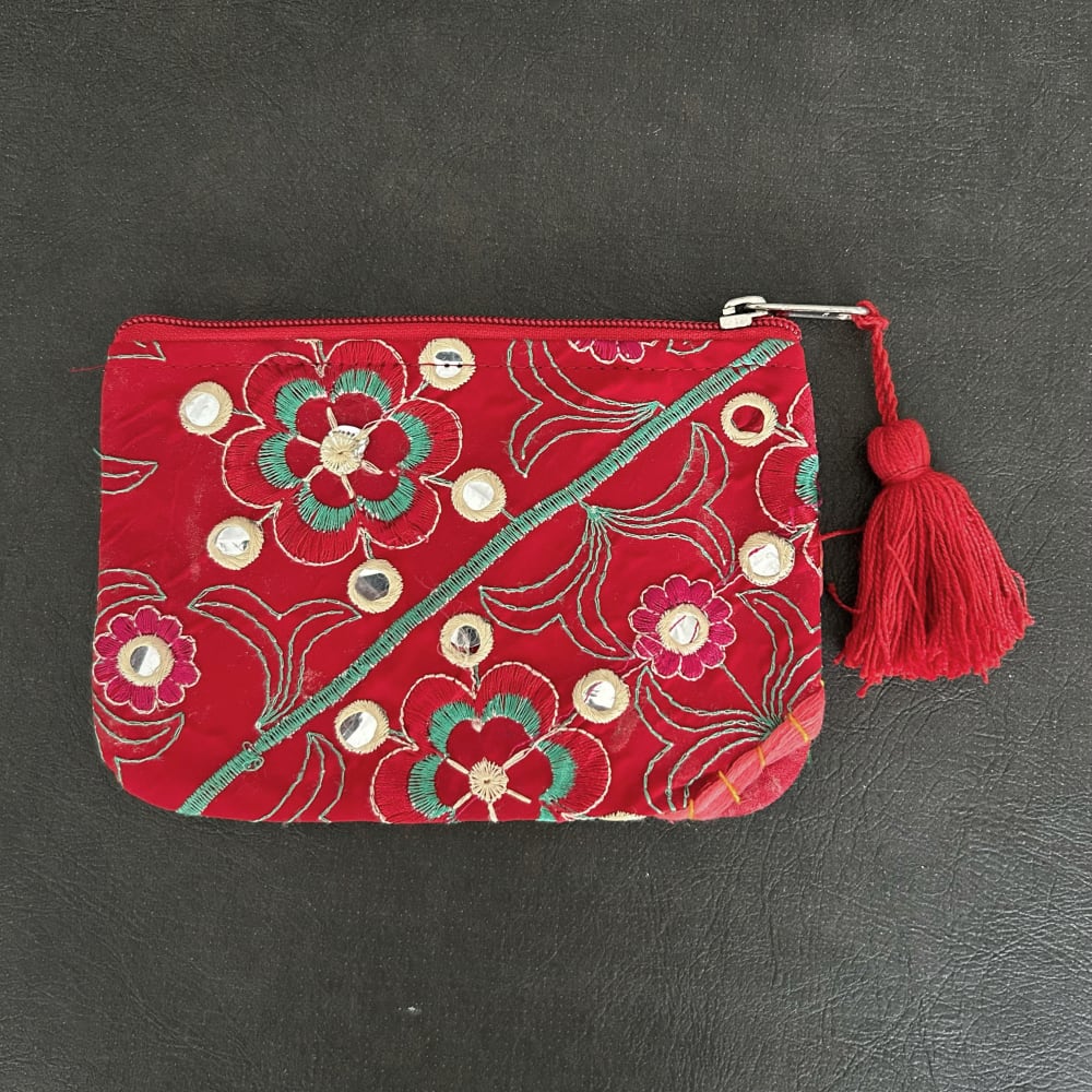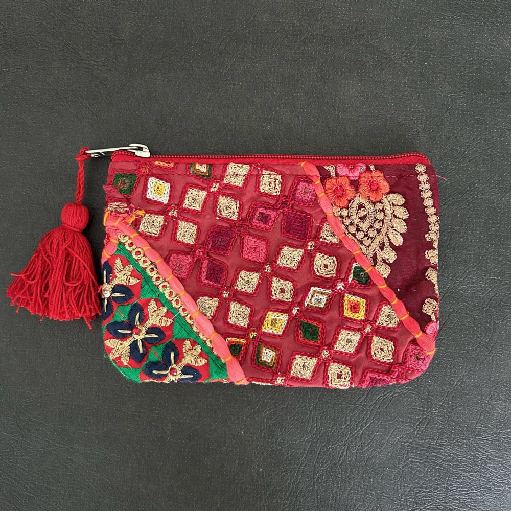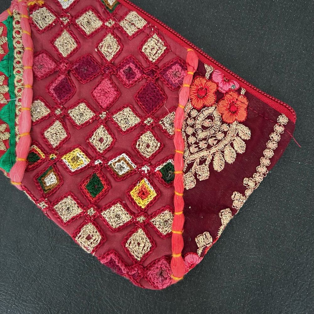 刺繍パッチワークポーチ カンバディア レッドB