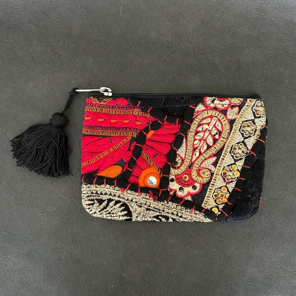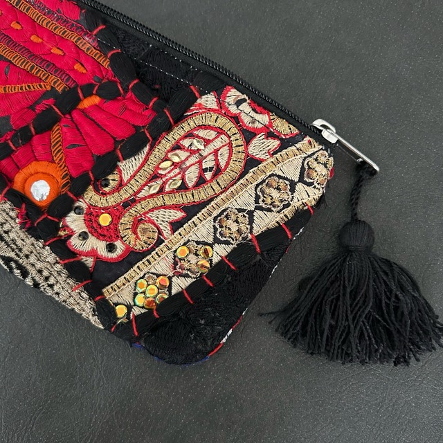 刺繍パッチワークポーチ カンバディア ブラックB
