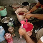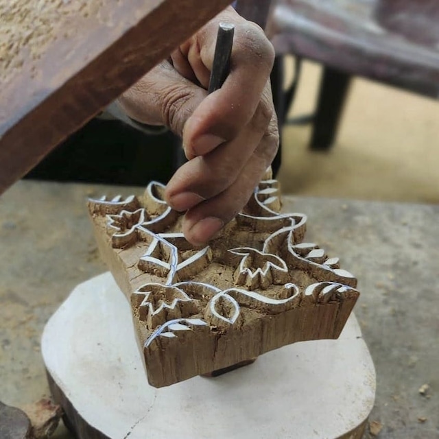 ブロックプリントは、木彫りの版を使い、