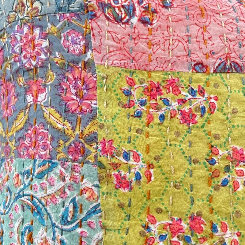 Fabindia クッションカバー グドゥリー刺繡 パッチワーク S